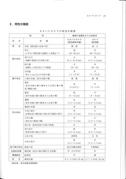 Table of characteristic properties