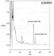 | Analytical Conditions | (1)ギンセノシドRg1,本品の粉末約1 gを精密に量り,共栓遠心沈殿管に入れ,薄めたメタノール(3→5)30 mLを加えて15分間振り混ぜ, 遠心分離し,上澄mを分取する. 残留物は更に薄めたメタノール(3→5)15 mL を加え,同様に操作する. 全上澄液を合わせ,薄めたメタノール(3→5)を加えて正確に50 mLとする.この液10 mLを正確にとり,希水酸化ナトリウム試液3 mLを加えて 30 分間放置した後, 0.1 mol/L塩酸試液3 mLを加え,薄めたメタノール(3→5)を加えて正確に20 mLとし,試料溶液とする. 別にギンセノシドRg1,標準品(別途水分を測定しておく)約10 mg を精密に量り,薄めたメタノール(3→5)を加えて正確に100 mL とし, 標準溶液とする.試料溶液及び標準溶液10 μLずつを正確にとり,次の条件で液体クロマトグラフィー〈2.01〉により試験を行う. それぞれの液のギンセノシドRg1,のピーク面積AT及びASを測定する. ギンセノシドRg1(C42H72O14)の量(mg) =WS×(AT/AS) WS:脱水物に換算したギンセノシドRg1,標準品の秤取量(mg) 試験条件 検出器:紫外吸光光度計(測定波長:203 nm) カラム:内径4.6 mm, 長さ15 cm のステンレス管に5 μmの液体クロマトグラフィー用オクタデシルシリル化シリカゲルを充てんする. カラム温度:30 ℃付近の一定温度 移動相:水/アセトニトリル混液(4:I) 流量:ギンセノシドRg1,の保持時間が約25分になるように調整する. システム適合性 システムの性能:ギンセノシドRg1,標準品及びギンセノシドRe 1 mg ずつを薄めたメタノール(3→5)に溶かして10 mL とする. この液10 μLにつき,上記の条件で操作するとき,ギンセノシドRg1,ギンセノシドReの順に溶出し,その分離度は1.5以上である. システムの再現性:標準溶液10 μLにつき,上記の条件で試験を6回繰り返すとき,ギンセノシドRg1,のピーク面積の相対標準偏差は1.5 % 以下である. (2)ギンセノシドRb1,(1)の試料溶液を試料溶液とする.別にギンセノシドRb1,標準品(別途水分を測定しておく)約10 mg を精密に量り, 薄めたメタノール(3→5)を加えて正確に100 mL とし,標準溶液とする.試料溶液及び標準溶液10 μLずつを正確にとり, 次の条件で液体クロマトグラフィー〈2.01〉により試験を行う.それぞれの液のギンセノシドRb1,のピーク面積AT及びASを測定する. ギンセノシドRb1 (C54H92O23)の量(mg) =WS×(AT/AS) WS:脱水物に換算したギンセノシドRb1,標準品の秤取量 (mg) 試験条件 検出器:紫外吸光光度計(測定波長:203 nm) カラム:内径4.6 mm, 長さ15 cm のステンレス管に5 μmの液体クロマトグラフィー用オクタデシルシリル化シリカゲルを充てんする. カラム温度:40 ℃付近の一定温度 移動相:水/アセトニトリル混液(7:3) 流量:ギンセノシドRb1,の保持時間が約20 分になるように調整する. システム適合性 システムの性能:ギンセノシドRb1,標準品及びギンセノシドRc 1 mgずつを薄めたメタノール(3→5)に溶かして10 mL とする. この液10 μLにつき,上記の条件で操作するとき,ギンセノシドRb1,ギンセノシドRcの順に溶出し,その分離度は3 以上である. システムの再現性:標準溶液10μLにつき,上記の条件で試験を6回繰り返すとき,ギンセノシドRb1,のピーク面積の相対標準偏差は1.5%以下である. |