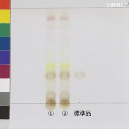 | 備考 | Merck 社製 TLC plate (10cm展開) Rf値 0.36(黄褐色~黒褐色) 展開時間 31分 標準:アルブチン(Arbutin) ①スペイン(2009年6月入手) ②スペイン(2007年9月入手) |
