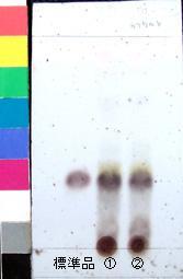 | 備考 | Wako 社製 TLC plate (7cm展開) Rf値 0.34(黄褐色~黒褐色) 展開時間 10分 標準:アルブチン(Arbutin) ①スペイン(2009年6月入手) ②スペイン(2007年9月入手) |