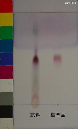 | JP identification memo | Merck社製 7cm展開 Rf値: 0.48 展開時間 10分 標準品1 ゲニポシド 標準品2 ゲニピン(参考) |