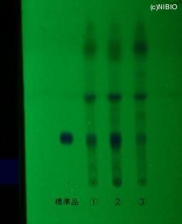 | JP identification memo | Wako 社製 TLC plate(10cm展開) Rf値:標準品 0.26(青色) ①②③ 0.25(青色) 展開時間 15分 標準 4'-O-グルコシル-5-O-メチルビサミノール(4'-O-Glucosyl-5-O-methylvisamminol) ①中国・内蒙古(2008年6月) ②中国・河北省(2010年9月) ③中国・陝西省(2007年8月) |