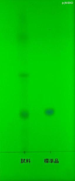 | Analytical Conditions | 本品の粉末1gにメタノール5mLを加えて10分間振り混ぜた後,ろ過し,ろ液を試料溶液とする.別に薄層クロマトグラフィー用4′-O-グルコシル-5-O-メチルビサミノール1mgをメタノール1mLに溶かし,標準溶液とする.これらの液につき,薄層クロマトグラフィー〈2.03〉により試験を行う.試料溶液及び標準溶液5μLずつを薄層クロマトグラフィー用シリカゲル(蛍光剤入り)を用いて調製した薄層板にスポットする.次に酢酸エチル/メタノール/水混液(10:2:1)を展開溶媒として約10cm展開した後,薄層板を風乾する.これに紫外線(主波長254nm)を照射するとき,試料溶液から得た数個のスポットのうち1個のスポットは,標準溶液から得た青色のスポットと色調及びRf値が等しい. |