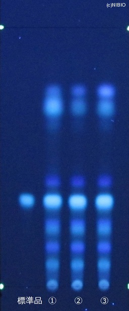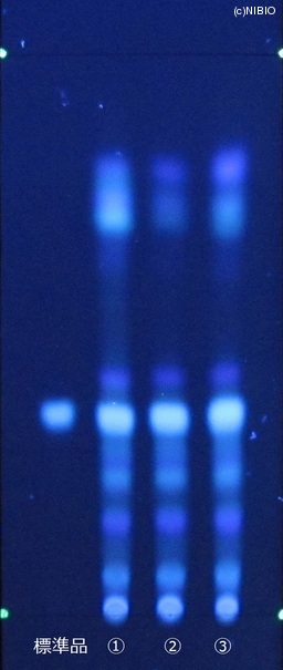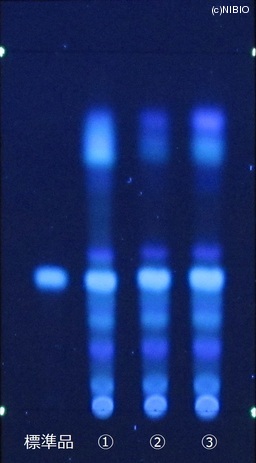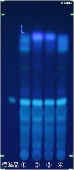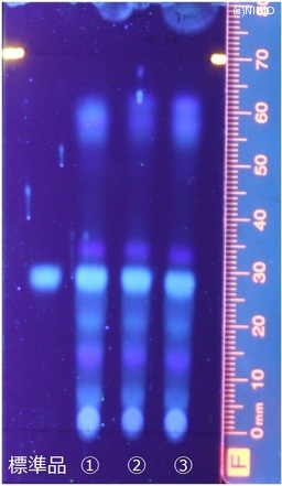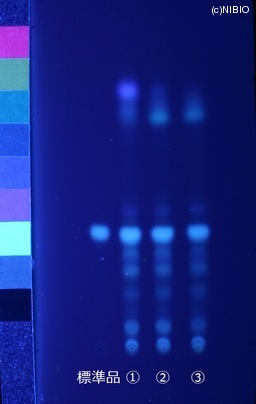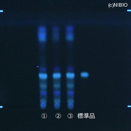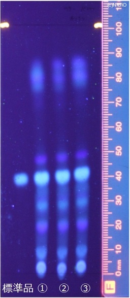 | JP identification memo | Merck社製 TLC plate(10cm展開) Rf値:0.35(青白色蛍光) 展開時間:24分 標準品:プエラリン ①中国・安徽省(2010年11月) ②中国・湖北省(2006年12月) ③中国・四川省(2008年12月) |