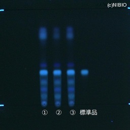 | JP identification memo | Wako社製 TLC plate(10cm展開) Rf値:0.35(青白色蛍光) 展開時間:14分 標準品:プエラリン |