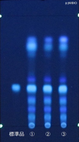 | JP identification memo | Wako社製 TLC plate(7cm展開) Rf値:標準品 0.39 試料 0.39 展開時間:8分 標準品:プエラリン |