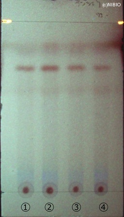| JP identification memo | Wako社製TLCplate, 7cm展開 Rf値 0.73(灰赤色~赤色) 展開時間 11分 ①日本・兵庫(2008年10月入手) ②日本・鳥取(2008年1月入手) ③日本・奈良(2007年11月入手) ④韓国(2006年12月入手) |