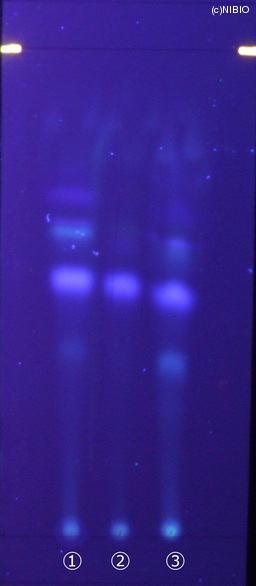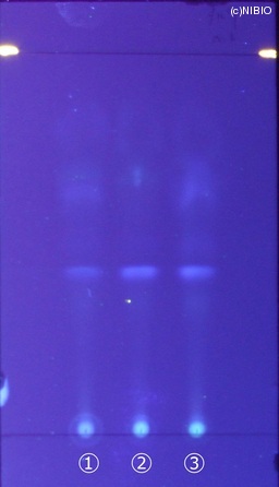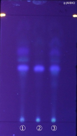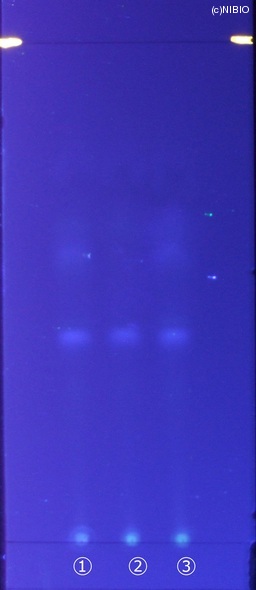 | 備考 | 紫外線(主波長365nm) Wako 社製 TLC plate(10cm展開) Rf値 0.51(青白色の蛍光) 展開時間 12分 ①中国(2008年7月入手) ②中国(2007年5月入手) ③中国(2004年10月入手) |