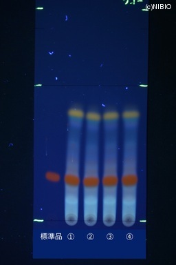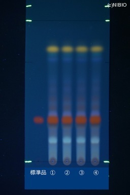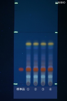 | 備考 | Merck 社製 TLC plate(10cm展開) Rf値 0.30 展開時間 24分 標準 バルバロイン(Barbaloin) ①産地不明(2009) ②産地不明(2009) ③産地不明(2010) ④産地不明(2011) |