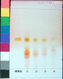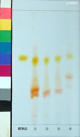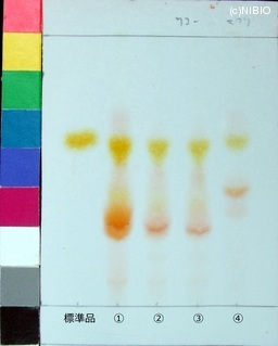 | 備考 | Wako 社製 TLC plate(7cm展開) Rf値 0.61(黄赤色) 展開時間 15分 標準 カイニン酸(Kainic acid) ①(2008年2月入手) ②(2005年6月入手) ③(2007年8月入手) ④(2008年6月入手) |