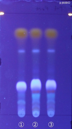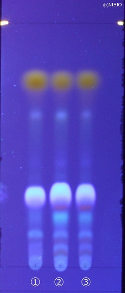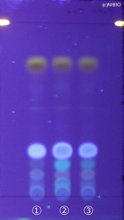 | 備考 | 条件変更追試 Wako 社製 TLC plate(7cm展開) Rf値 0.32(青白色の蛍光) 展開時間 7分 ①中国(2009年6月入手) ②中国(2008年4月入手) ③中国(2007年4月入手) |