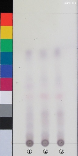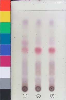 | 備考 | Merck 社製 TLC plate(7cm展開) Rf値 0.43(赤色) 展開時間 10分 ①中国(2011年4月入手) ②中国(2010年11月入手) ③中国(2007年9月入手) |