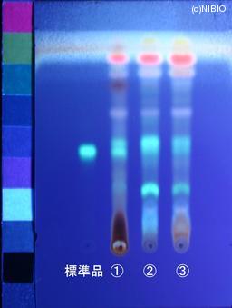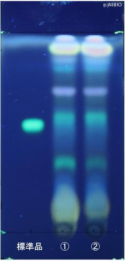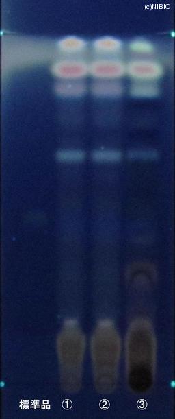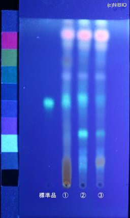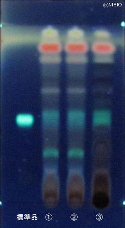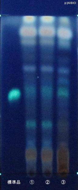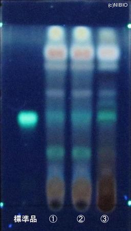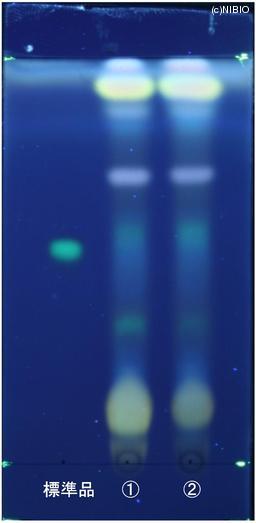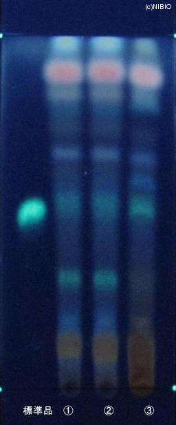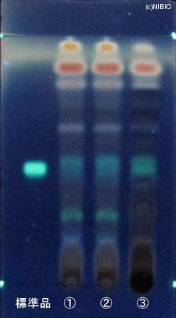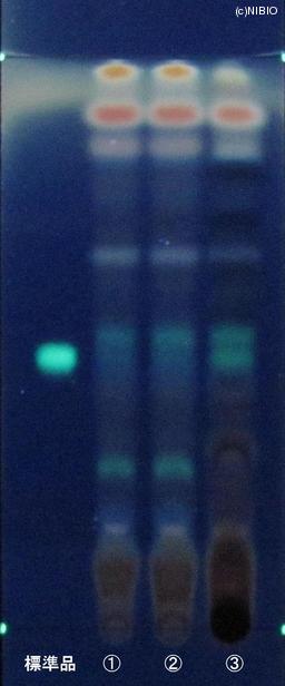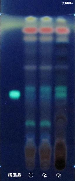 | 備考 | 再加熱後UV365nm照射 Merck社製 7cm展開 色調:緑色蛍光 |