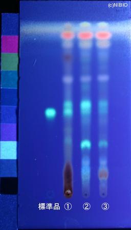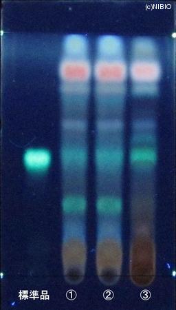 | 備考 | 再加熱後UV365nm照射 Wako社製 7cm展開 色調:緑色蛍光 |