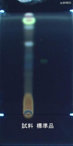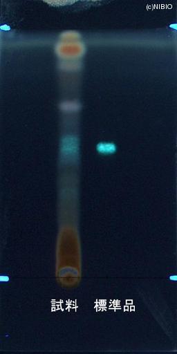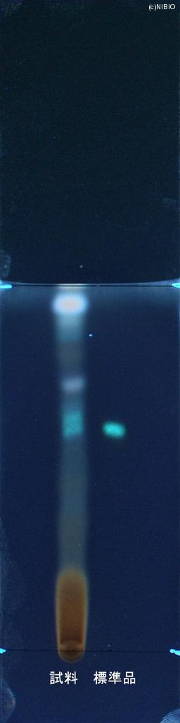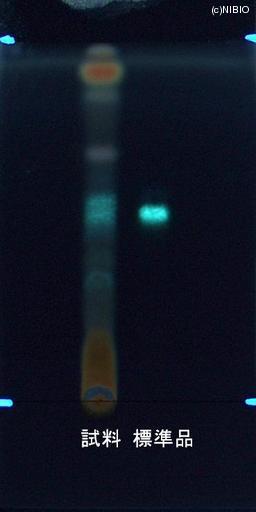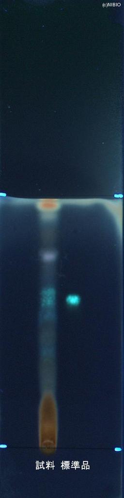 | 備考 | 希硫酸噴霧後加熱UV365nm照射 Merck社製 7cm展開 Rf値:0.47 (緑色蛍光) 展開時間 15分 標準品 |