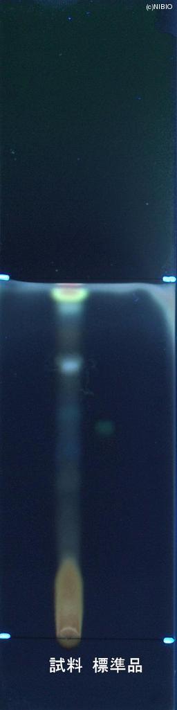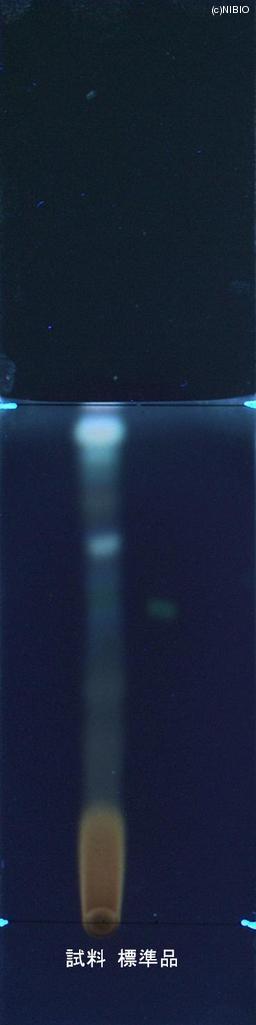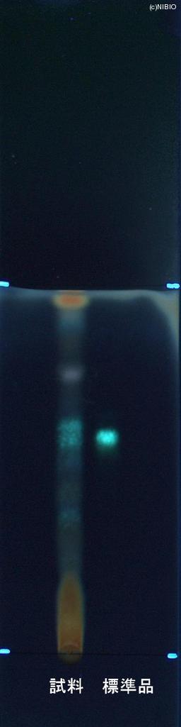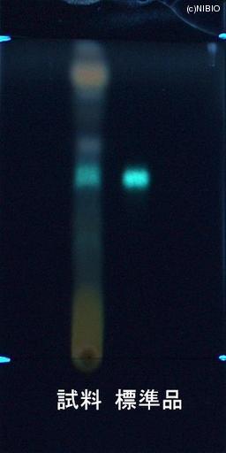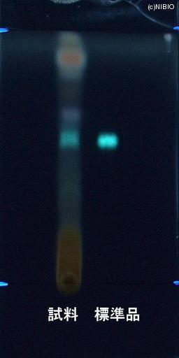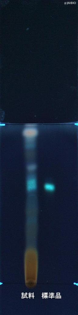 | 備考 | 希硫酸噴霧後加熱UV365nm照射 Wako社製 7cm展開 Rf値:0.49 (緑色蛍光) 展開時間 10分 標準品 |