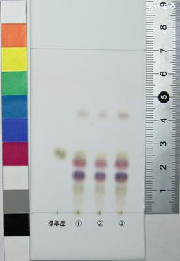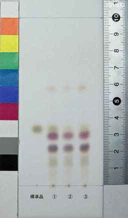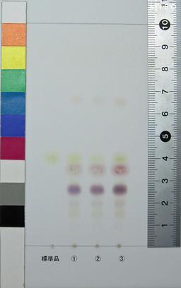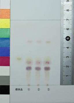 | 備考 | Wako社製 7cm展開 Rf値: 0.34 (青緑色) 展開時間 9分 標準品 レジブフォゲニン ①中国(入手年度不明) |