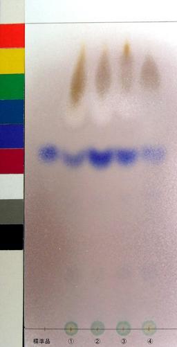 | 備考 | Wako社製 7cm展開 Rf値: 0.60 (青色) 展開時間 6分 標準品 (E)-カプサイシン ①中国(2009年2月)0.153%(カプサイシン含量) ②中国(2010年12月)0.461% ③中国(2006年3月)0.554% ④中国(2001年4月)0.262% |