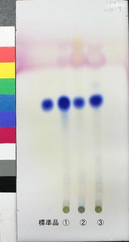 | 備考 | Merck社製 12cm展開 Rf値: 0.67 (青色) 展開時間 21分 標準品 (E)-カプサイシン ①中国(2009年2月)0.153%(カプサイシン含量) ②中国(2010年12月)0.461% ③中国(2006年3月)0.554% ④中国(2001年4月)0.262% |