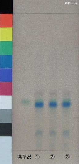 | Analytical Conditions | 本品の1.0gにエタノール(95)10mLを加え,時々振り混ぜながら30分間放置した後,ろ過し,ろ液を試料溶液とする.別に薄層クロマトグラフィー用ナリンギン二水和物10mgをエタノール(95)10mLに溶かし,標準溶液とする.これらの液につき,薄層クロマトグラフィー〈2.03〉により試験を行う.試料溶液及び標準溶液10μLずつを薄層クロマトグラフィー用シリカゲルを用いて調製した薄層板にスポットする.次に酢酸エチル/エタノール(99.5)/水混液(8:2:1)を展開溶媒として約10cm展開した後,薄層板を風乾する.これに希2,6-ジブロモ-N-クロロ-1,4-ベンゾキノンモノイミン試液を均等に噴霧し,アンモニアガス中に放置するとき,試料溶液から得た数個のスポットのうち1個のスポットは,標準溶液から得た灰緑色のスポットと色調及びRf値が等しい. |