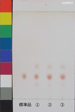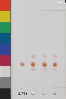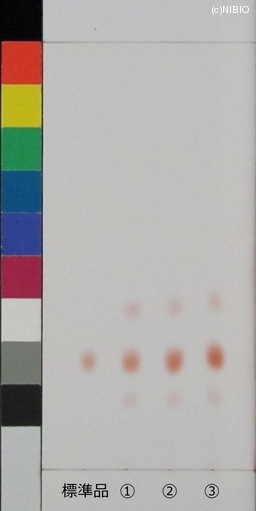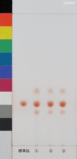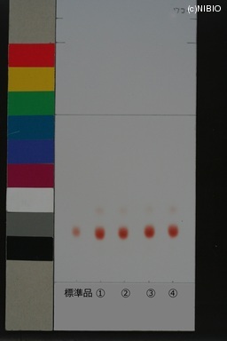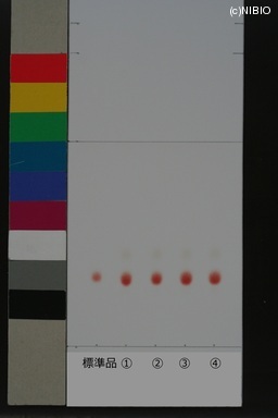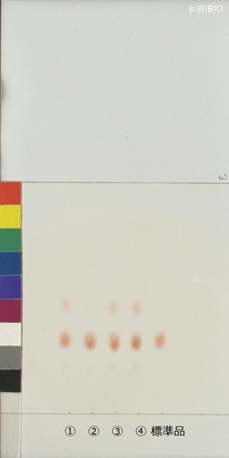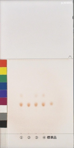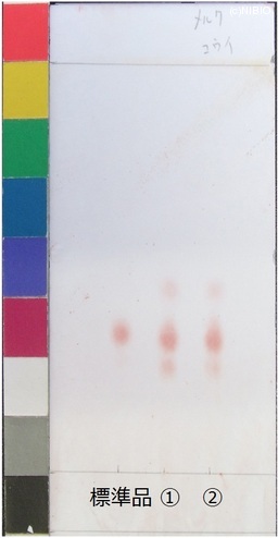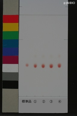 | JP identification memo | Wako社製 7cm展開 Rf値: 0.30 展開時間 22分 標準品 マルトース水和物 ①粉末飴 コウイ(2011) ②粉末飴 コウイ(2011) ③粉末飴 コウイ(2011) ④粉末飴 コウイ(2011) |
