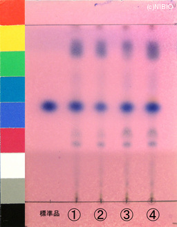 | JP identification memo | Wako 社製 TLC plate(7cm展開) Rf値:0.54 展開時間:6分 標準品:l-メントール ① 中国・安徽(2008年) ② 中国・江蘇(2009年) ③ 中国・上海(2010年) ④ 中国・上海(2011年) |