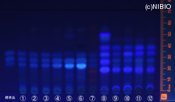 | Analytical Conditions | <参考情報> 調製方法:粉末1 g→メタノール10 mL,10分間振り混ぜ 展開溶媒:ヘキサン/アセトン混液(1:1) 塗布量 :10 μL 検出方法:紫外線(主波長365 nm)照射 |