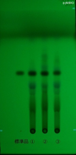 | 備考 | 紫外線(主波長254nm) Merck 社製 TLC plate(10cm展開) Rf値 0.47 展開時間 23分 標準 ベルゲニン (Bergenin) ①徳島(2011年入手) ②鹿児島(2010年入手) ③宮崎(2004年入手) |