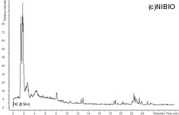 | MEMO | sample: KIKYOU (Platycodon Root) water ext. pos : 2 mg/mL (water/methanol 1:1) Injection Volume: 8μL neg : 1 mg/mL (water/methanol 1:1) Injection Volume: 5μL キキョウ 水抽出エキス ボジティブモード 2 mg/mL (水/メタノール 1:1溶液) 注入量: 8μL ネガティブモード 1 mg/mL (水/メタノール 1:1溶液) 注入量: 5μL | |||||||