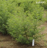 | 生態的特徴 | 中国が原産地と考えられ,中国,朝鮮半島,シベリア,インド,西アジアおよび東欧に分布する.日本では,帰化植物として本州,四国および九州に広く分布する.クソニンジンは短日植物である筑波研究部では,開花は8月下旬に始まり,10月下旬に種子が成熟する. | ||||||||||||