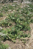 | 形態的特徴 | 茎(花茎)は中空で直立し,高さ40〜100cm.茎葉は対生し,5〜7個の羽状に深裂する.根出葉は長さ30〜40cm,根出葉の葉柄は葉身に比しやや長く,複葉の頂生小葉は先端鈍頭で鋸歯が少なく,切れ込みも浅い.春から初夏にかけて集散花序を頂生,淡紅色の小型の花を多数付ける. 株は短い根茎があり,ストロンを伸ばし,分散形をなして広がる.根は長さは約20cm,太さは3〜3.5mmで直下に伸びる. | |||||||||
