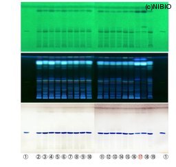 | Memo | A. 254nm B. 366nm C. 6-ジブロモ-N-クロロ-1,4-ベンゾキノンモノイミン試液(アンモニアガス) ①STD.Hesperidin ②NIB-253 ③NIB-399 ④NIB-422 ⑤NIB-459 ⑥NIB-638 ⑦NIB-663 ⑧NIB-664 ⑨NIB-665 ⑩NIB-666 ⑪NIB-667 ⑫NIB-668 ⑬NIB-669 ⑭NIB-670 ⑮NIB-671 ⑯NIB-672 ⑰NIB-673 ⑱NIB-674 ⑲NIB-752 |