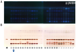 | Memo | A. 366nm B. 白色光 標:アミグダリン ① NIB-0272 ② NIB-0425 ③ NIB-0426 ④ NIB-0452 ⑤ NIB-0502 ⑥ NIB-0503 ⑦ NIB-0504 ⑧ NIB-0505 ⑨ NIB-0506 ⑩ NIB-0507 ⑪ NIB-0508 ⑫ NIB-0509 ⑬ NIB-0510 ⑭ NIB-0511 ⑮ NIB-0512 ⑯ NIB-0513 ⑰ NIB-0514 ⑱ NIB-0515 ⑲ NIB-0516 ⑳ NIB-0517 21 NIB-0518 22 NIB-0519 23 NIB-0520 24 NIB-0521 25 NIB-0522 26 NIB-0633 27 NIB-0744 |