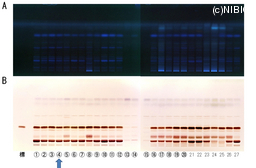 | Memo | A. 366nm B. 白色光 標:アミグダリン ① NIB-0272 ② NIB-0425 ③ NIB-0426 ④ NIB-0452 ⑤ NIB-0502 ⑥ NIB-0503 ⑦ NIB-0504 ⑧ NIB-0505 ⑨ NIB-0506 ⑩ NIB-0507 ⑪ NIB-0508 ⑫ NIB-0509 ⑬ NIB-0510 ⑭ NIB-0511 ⑮ NIB-0512 ⑯ NIB-0513 ⑰ NIB-0514 ⑱ NIB-0515 ⑲ NIB-0516 ⑳ NIB-0517 21 NIB-0518 22 NIB-0519 23 NIB-0520 24 NIB-0521 25 NIB-0522 26 NIB-0633 27 NIB-0744 |