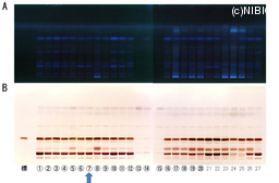 | Memo | A. 366nm B. 白色光 標:アミグダリン ① NIB-0272 ② NIB-0425 ③ NIB-0426 ④ NIB-0452 ⑤ NIB-0502 ⑥ NIB-0503 ⑦ NIB-0504 ⑧ NIB-0505 ⑨ NIB-0506 ⑩ NIB-0507 ⑪ NIB-0508 ⑫ NIB-0509 ⑬ NIB-0510 ⑭ NIB-0511 ⑮ NIB-0512 ⑯ NIB-0513 ⑰ NIB-0514 ⑱ NIB-0515 ⑲ NIB-0516 ⑳ NIB-0517 21 NIB-0518 22 NIB-0519 23 NIB-0520 24 NIB-0521 25 NIB-0522 26 NIB-0633 27 NIB-0744 |