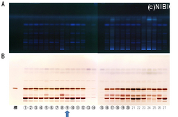 | Memo | A. 366nm B. 白色光 標:アミグダリン ① NIB-0272 ② NIB-0425 ③ NIB-0426 ④ NIB-0452 ⑤ NIB-0502 ⑥ NIB-0503 ⑦ NIB-0504 ⑧ NIB-0505 ⑨ NIB-0506 ⑩ NIB-0507 ⑪ NIB-0508 ⑫ NIB-0509 ⑬ NIB-0510 ⑭ NIB-0511 ⑮ NIB-0512 ⑯ NIB-0513 ⑰ NIB-0514 ⑱ NIB-0515 ⑲ NIB-0516 ⑳ NIB-0517 21 NIB-0518 22 NIB-0519 23 NIB-0520 24 NIB-0521 25 NIB-0522 26 NIB-0633 27 NIB-0744 |