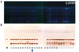 | Memo | A. 366nm B. 白色光 標:アミグダリン ① NIB-0272 ② NIB-0425 ③ NIB-0426 ④ NIB-0452 ⑤ NIB-0502 ⑥ NIB-0503 ⑦ NIB-0504 ⑧ NIB-0505 ⑨ NIB-0506 ⑩ NIB-0507 ⑪ NIB-0508 ⑫ NIB-0509 ⑬ NIB-0510 ⑭ NIB-0511 ⑮ NIB-0512 ⑯ NIB-0513 ⑰ NIB-0514 ⑱ NIB-0515 ⑲ NIB-0516 ⑳ NIB-0517 21 NIB-0518 22 NIB-0519 23 NIB-0520 24 NIB-0521 25 NIB-0522 26 NIB-0633 27 NIB-0744 |