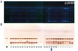 | Memo | A. 366nm B. 白色光 標:アミグダリン ① NIB-0272 ② NIB-0425 ③ NIB-0426 ④ NIB-0452 ⑤ NIB-0502 ⑥ NIB-0503 ⑦ NIB-0504 ⑧ NIB-0505 ⑨ NIB-0506 ⑩ NIB-0507 ⑪ NIB-0508 ⑫ NIB-0509 ⑬ NIB-0510 ⑭ NIB-0511 ⑮ NIB-0512 ⑯ NIB-0513 ⑰ NIB-0514 ⑱ NIB-0515 ⑲ NIB-0516 ⑳ NIB-0517 21 NIB-0518 22 NIB-0519 23 NIB-0520 24 NIB-0521 25 NIB-0522 26 NIB-0633 27 NIB-0744 |