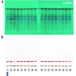 | Condition | (試料調製)各試料の粉末0.2 gにメタノール1.0 mLを加え、約5分間超音波処理を行った。遠心分離後、得られた上清を試料溶液とした。 (TLC条件)注入量:試料溶液2または5 μL、標準溶液2 μL(1 mg/mL)、展開溶媒:酢酸エチル/1-プロパノール/水/酢酸(7:5:4:1)、n-ヘキサン/アセトン(3:1)、検出:UV照射(254 nm)、希硫酸試液噴霧後、加熱。 |