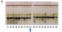 | Condition | (試料調製)各試料の粉末0.1 gにメタノール1.0 mLを加え、約5分間超音波処理を行った。遠心分離後、得られた上清を試料溶液とした。 (TLC条件)注入量:試料溶液5 μL、標準溶液1 μL(1 mg/mL)、展開溶媒:酢酸エチル/1-プロパノール/水/酢酸(7:5:4:1)、検出:希硫酸試液噴霧後、加熱。 |