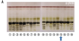 | Condition | (試料調製)各試料の粉末0.1 gにメタノール1.0 mLを加え、約5分間超音波処理を行った。遠心分離後、得られた上清を試料溶液とした。 (TLC条件)注入量:試料溶液5 μL、標準溶液1 μL(1 mg/mL)、展開溶媒:酢酸エチル/1-プロパノール/水/酢酸(7:5:4:1)、検出:希硫酸試液噴霧後、加熱。 |
