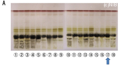 | Condition | (試料調製)各試料の粉末0.1 gにメタノール1.0 mLを加え、約5分間超音波処理を行った。遠心分離後、得られた上清を試料溶液とした。 (TLC条件)注入量:試料溶液5 μL、標準溶液1 μL(1 mg/mL)、展開溶媒:酢酸エチル/1-プロパノール/水/酢酸(7:5:4:1)、検出:希硫酸試液噴霧後、加熱。 |